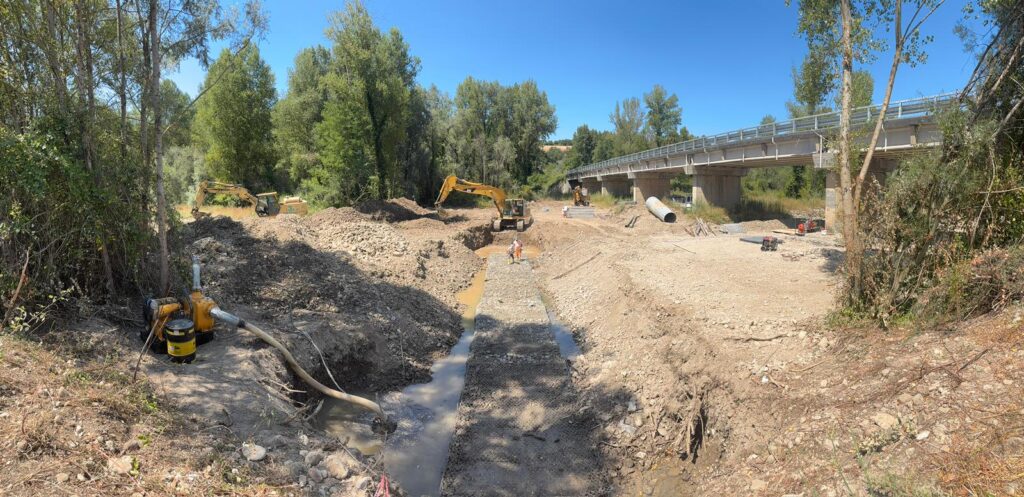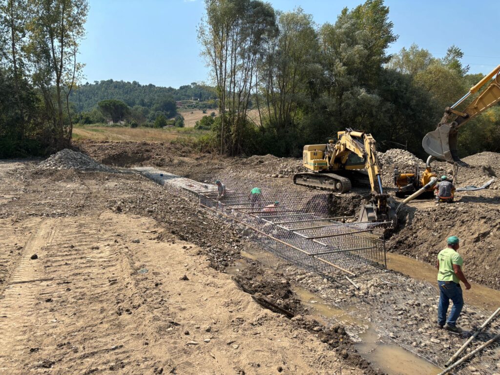 Sistemazione idraulica con briglia, blocchi di ancoraggio e materassi per contenimento del reflusso delle acque del fiume Isca delle Botte